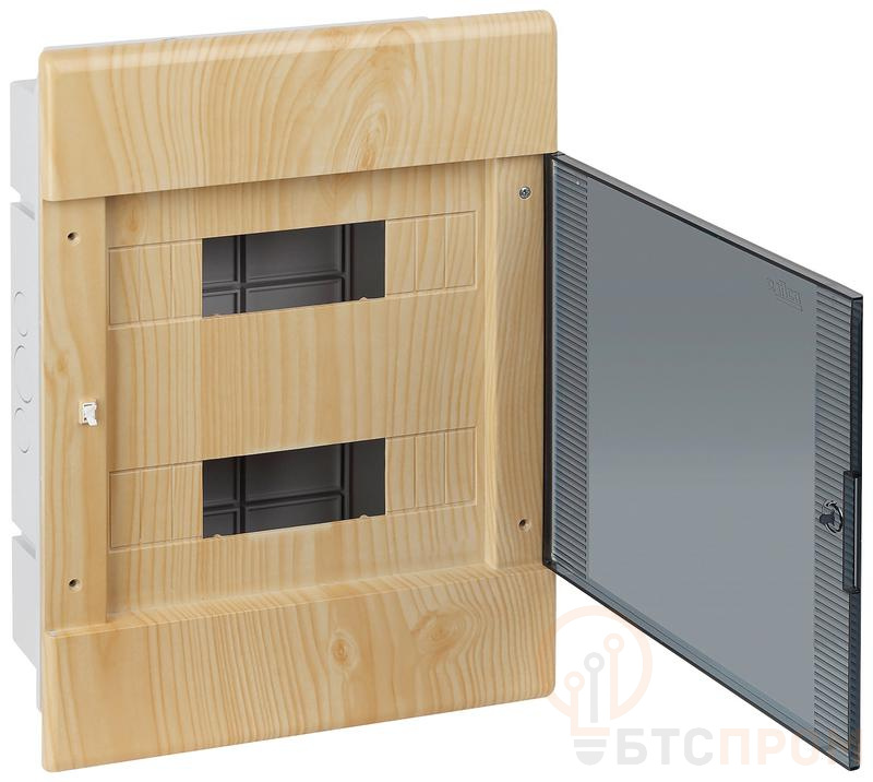 Корпус устройства рассчитан на 24 модуля, изготовлен из высококачественной сосны, что обеспечивает ему эстетичный вид и долговечность. Габаритные размеры 415x299x103 мм позволяют разместить необходимое количество аппаратов защиты и управления. Конструкция оснащена запирающейся дверцей, которая предотвращает несанкционированный доступ к электрооборудованию, обеспечивая безопасность эксплуатации.