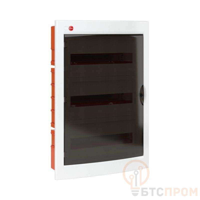 Встраиваемый распределительный щиток ДКС предназначен для монтажа в жилых и административных помещениях для установки автоматических выключателей любых производителей: таймеров, устройств защитного отключения и управления освещением и т.д. Щиток имеет оцинкованную DIN-рейку и суппорт, заглушки для пустых модулей, сборочные винты и заглушки для них, самоклеящуюся этикетку для маркировки цепей. Межосевое расстояние между рядами 150-175-200 мм. Преперфорированные отверстия и насечки на задней стенке обеспечивают точное соединение с пластиковыми трубами и обеспечивают легкий монтаж. Дверца выполнена из затемненного полупрозрачного пластика. Специальная конструкция петель дает возможность открывать дверцу более чем на 180°. Степень пыле- и влагозащиты IP 41. Количество модулей - 54. Параметры щитка: ширина - 455 мм, высота - 650 мм, глубина встраиваемой части - 97 мм. Материал - термостойкий пластик. Цвет - белый.