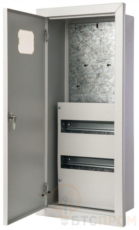 Щит распределительный учетный серии ЩРУВ Dekraft; встраиваемый; для трехфазного счетчика; номинальный ток до 125 А; исполнение – 24 мод. х 18 мм, 2 ряда; ВхШхГ - 710х333х160 мм; материал – сталь; цвет - серый (RAL 7032); степень защиты - IP31. Щиты ЩРУН имеют монтажную панель для крепления счетчика, DIN-рейки для модульной аппаратуры, элементы крепления шин N и PE, болты заземления на дверце и на корпусе, дверь с замком и ключом. Ввод кабелей для всех щитов осуществляется сверху или снизу.