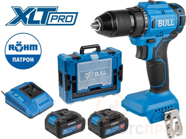 Аккум. дрель-шуруповерт BULL SR 1803 Xcase XLTpro БЕСЩЕТ., 2x4 А*ч, 18 В, 45 Н*м, БЗП 13 мм (шурупы до 10 мм, ROHM series) 2329055