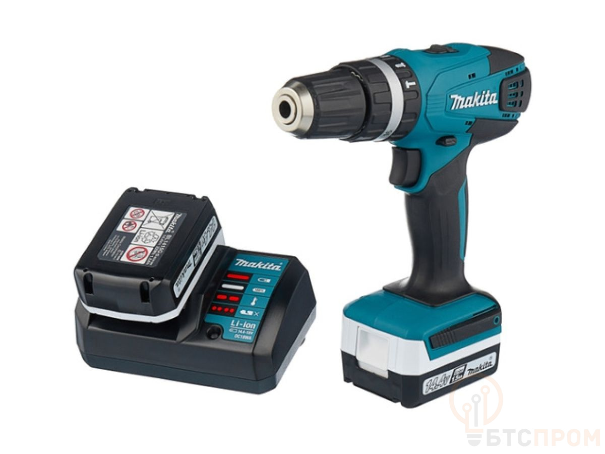 Аккум. ударная дрель-шуруповерт MAKITA HP 347 DWE в чем. (14.4 В, 2 акк., 1.5 А/ч Li-Ion, 2 скор., 30 Нм, шурупы до 13 мм, сверление в металле до 8 ммG-series) HP347DWE