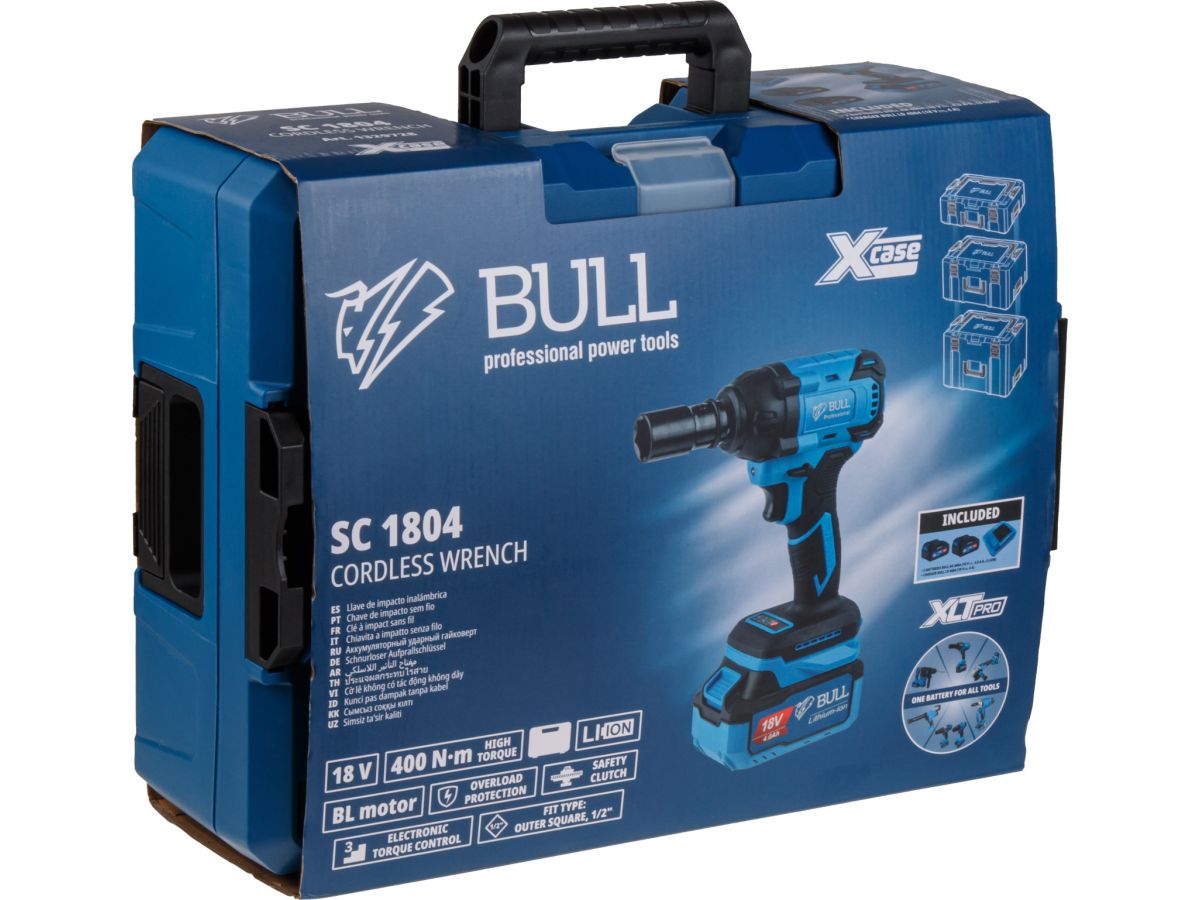 Аккум. ударный гайковерт BULL SC 1804 Xcase, XLTpro, БЕСЩЕТ., 18 В, 400 Н*м, 1/2", 2х4 А*ч, з/у 4 А (вес 2.0 кг) 1329728