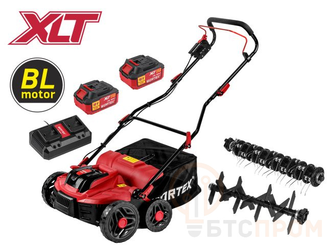 Аккум. аэратор-скарификатор WORTEX CAE 3736 ALL1 XLT SET БЕСЩЁТ.ДВИГ., 18В+18В, шир. 37 см (2 4Ач акб, зу, вал для аэрации, вал для скарификации, 5 рег.высоты, 45 л травосборник) 1334877