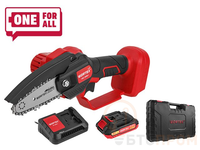 Аккум. мини-пила входит в систему инструмента на одной батарее WORTEX ALL1. Имеет небольшой вес и компактный дизайн. Идеально подойдёт для обрезки веток в саду и распила древесины небольшой толщины.