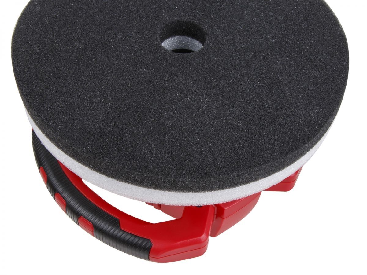 Инструмент обладает эксцентриковым действием с уровнем колебаний 6 мм. Благодаря эксцентриковой траектории достигается высокое качество обрабатываемой поверхности. Имеет защиту от перегрузок. Шестиступенчатая регулировка оборотов. Работает от съемного аккумулятора. Время работы инструмента при работе с аккумулятором 4 Ач составляет порядка 60 мин (под нагрузкой). Комфортный хват достигается путем наличия двух ребристых рукояток. Аккумулятор и зарядное входят в комплект.
