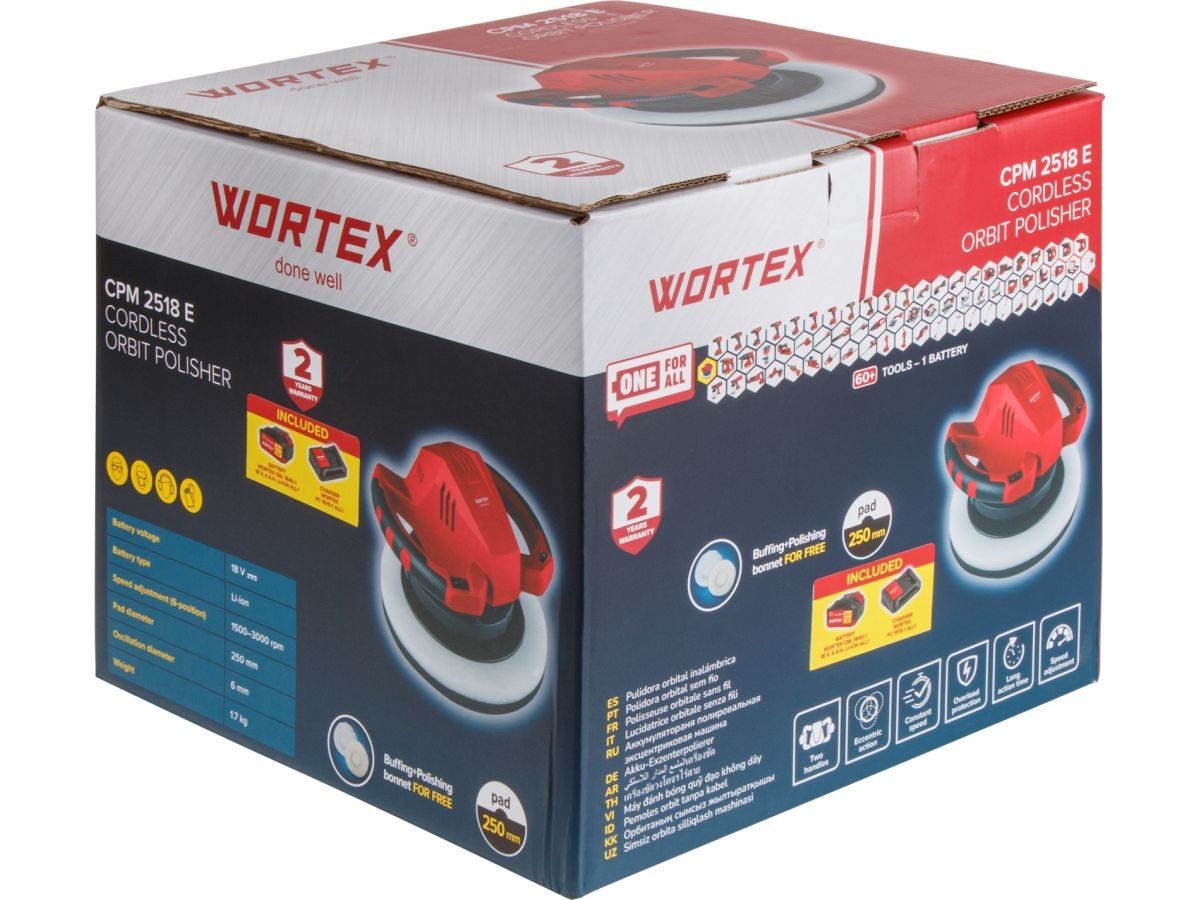 Аккум. полировальная машина WORTEX CPM 2518 E в кор. ALL1 XLT с акб и з/у SET (18 В, 250 мм, 1500-3000 об/мин) 1334508