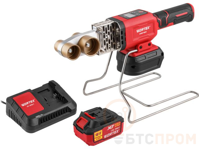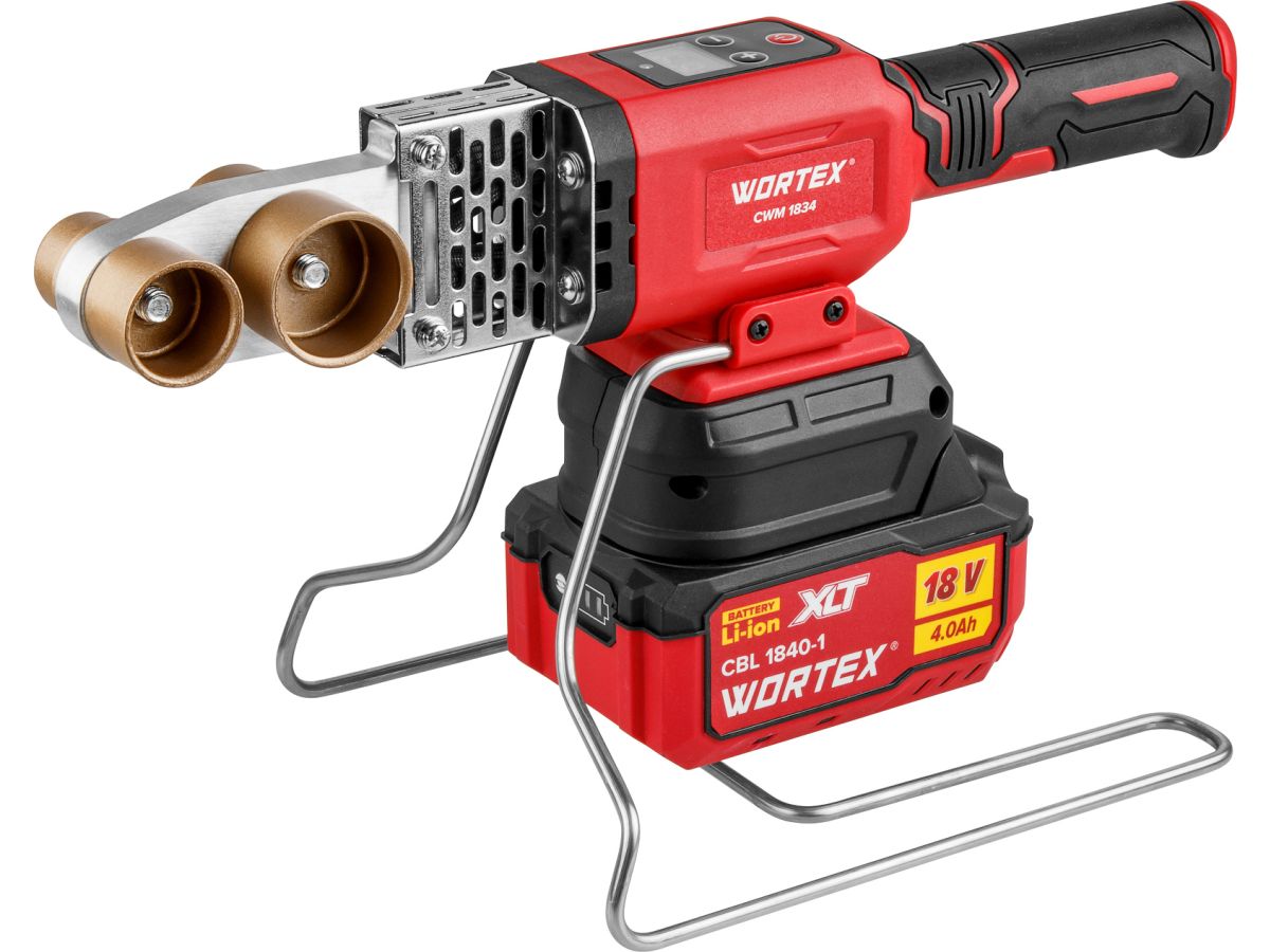 Аккум. сварочный аппарат для полимерных труб WORTEX CWM 1834 ALL1 XLT SET с акб и зу+3 насадки (300 Вт, 25-340 C, электронная регулировка.) 1304777