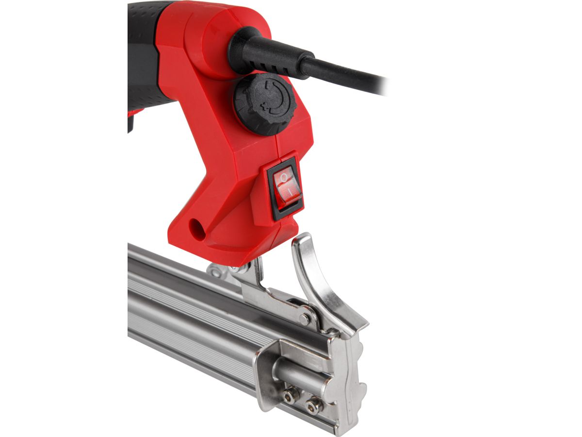 Обеспечивает надежное крепление материала с помощью быстрого и точного забивания различного размера скоб/гвоздей. Применяется для сшивания изолирующих материалов, пленок, текстиля к деревянным поверхностям.