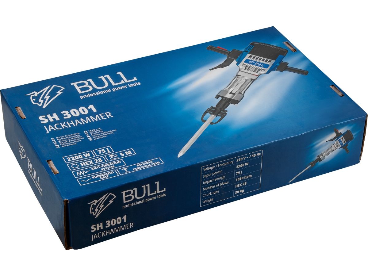 Отбойный молоток BULL SH 3001 в кор. 2000 Вт, 75 Дж, HEX 28.6 мм, 1050 уд/мин, 5 м кабель (30 кг) 1333638