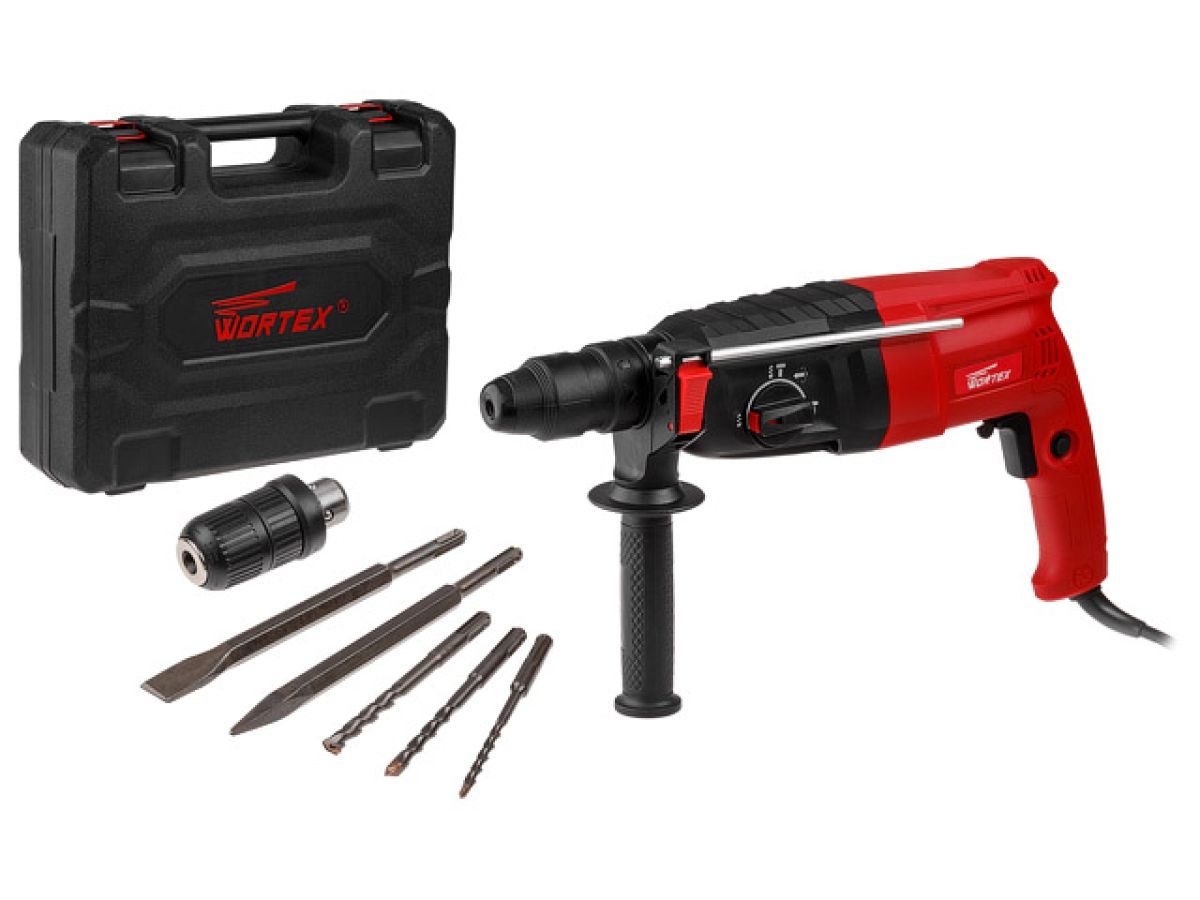 Перфоратор WORTEX RH 2829 в чем. + (2 зубила, 3 сверла) 900 Вт, 3.2 Дж, 28 мм, 4 режима, SDS-plus, Б (вес 3.4 кг) RH282901129