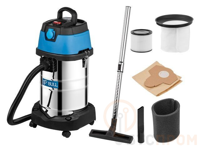 Пылесос BULL AS 3001 + аксессуары 1400 Вт, 30 л, 6м кабель, 3м шланг, HEPA, мануал., выдув (класс: L, очистка: мануальная, автовключение, выдув, 2 фильтра, розетка 2000 Вт) 15030129