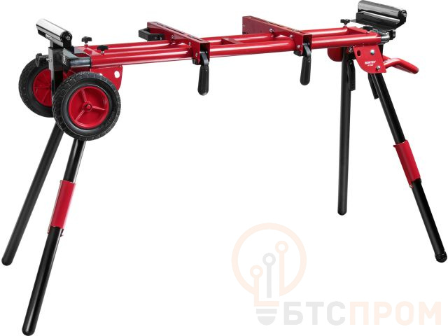 Данная модель оснащена колёсами и рукояткой для удобного перемещения вместе с закрепленной пилой или без неё.