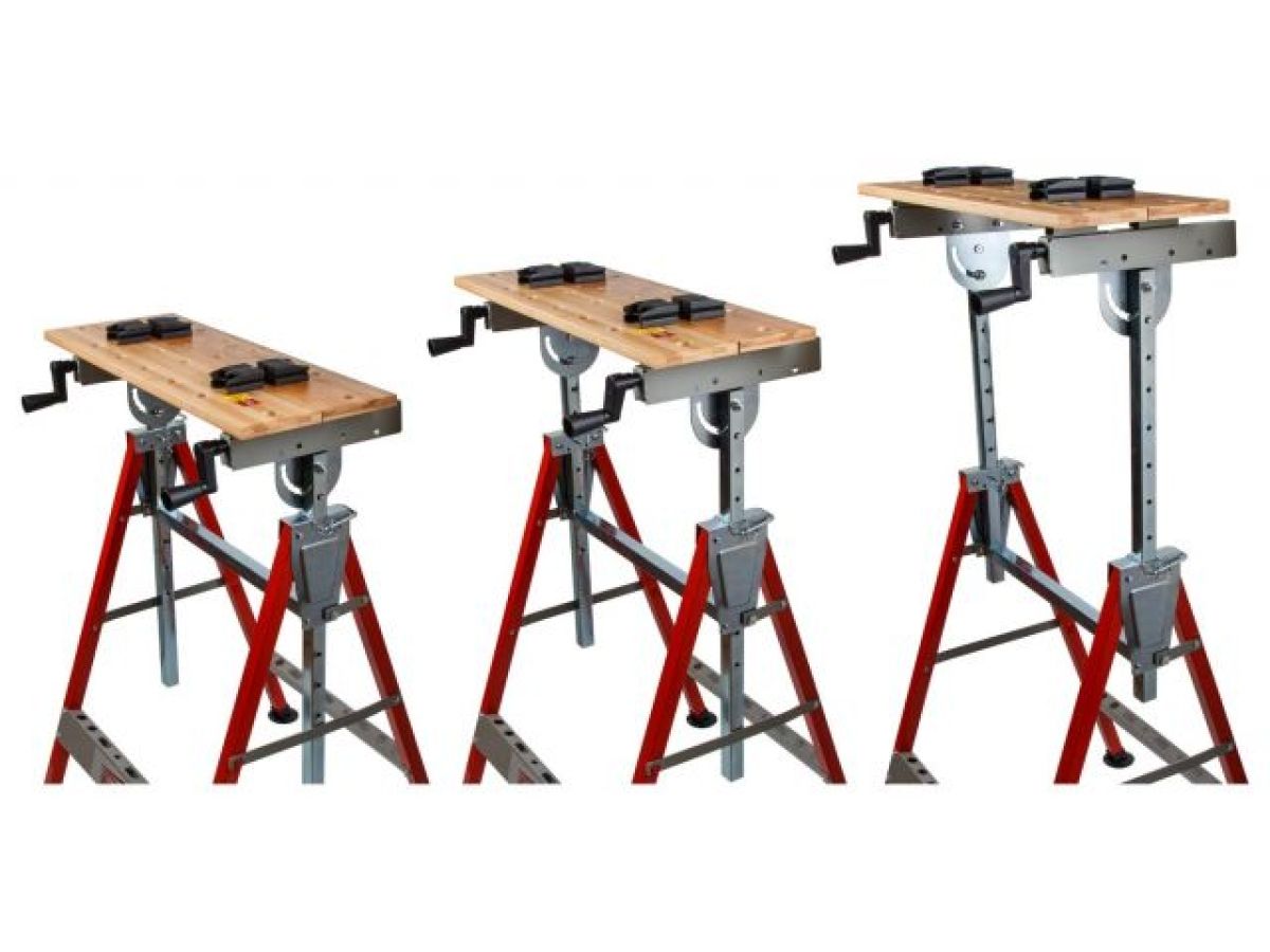 Многофункциональное устройство для облегчения обработки различных заготовок.Возможность регулировки высоты и угла расположения столешницы. В верстаке так же имеется функция тисков. Верстак легко хранить и перевозить, благодаря складной конструкции. Предусмотрены отверстия в столешнице для надежной фиксации заготовок. Возможно использовать для закрепления инструмента. Имеет надежную металлическую конструкцию выдерживающую равномерную нагрузку в 100кг !