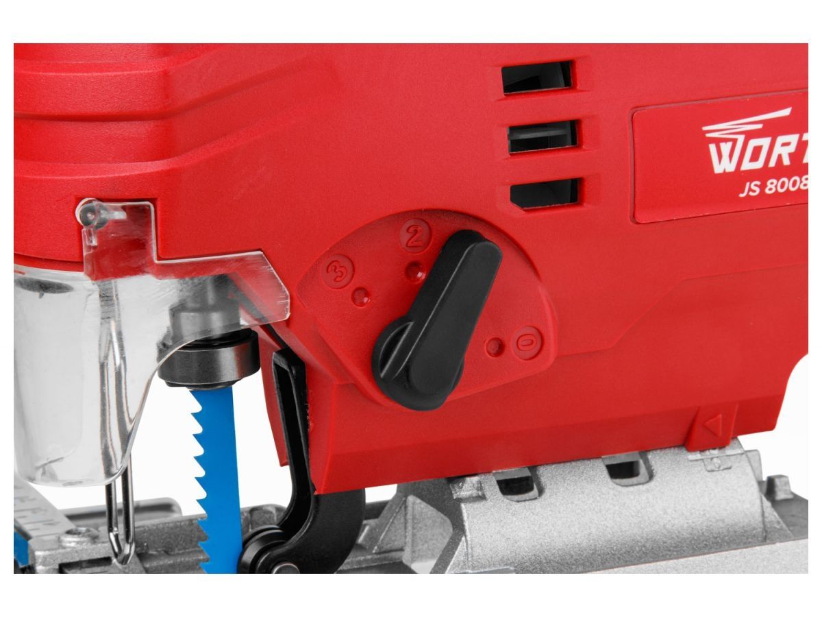 Лобзик электрический WORTEX JS 8008-1 LE в кор. 810 Вт, 1000-2900 ход/мин, пропил до 80 мм. (Быстрозажимной патрон, маятниковый ход, рег. об., подсветка, литая платформа) 0325116