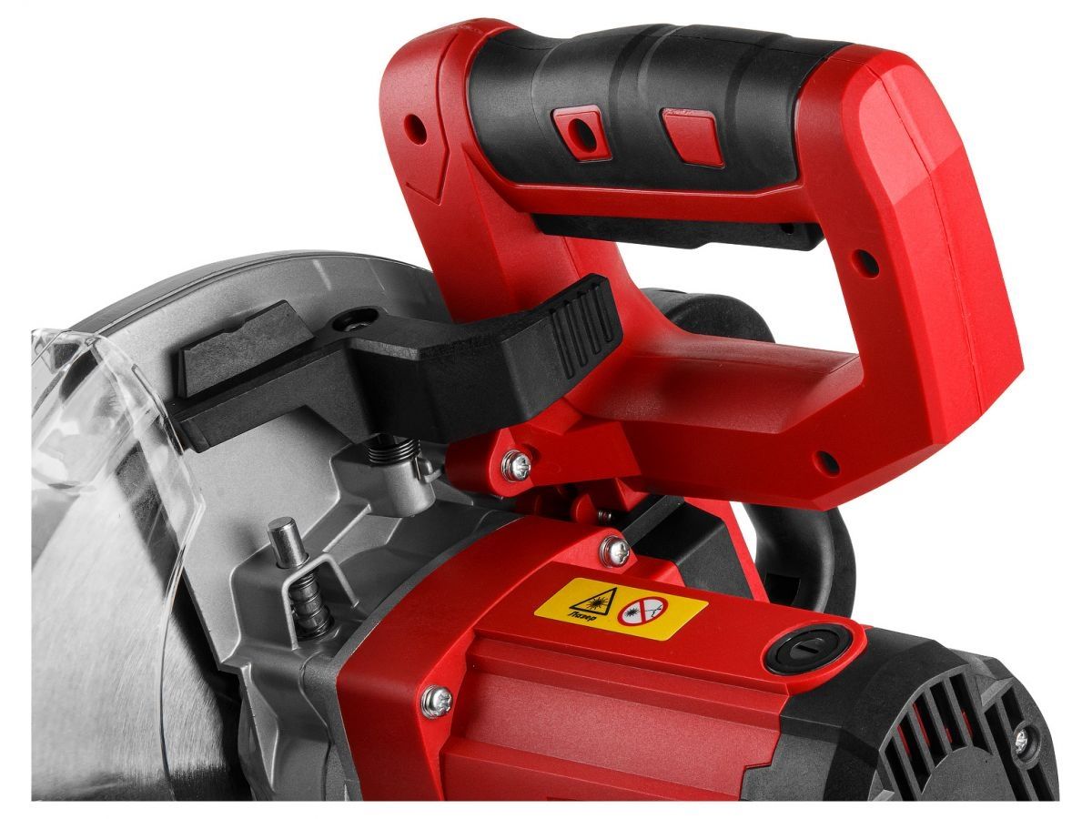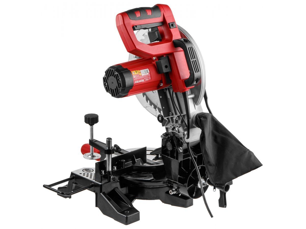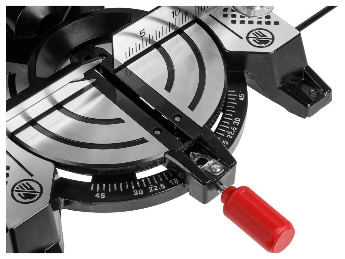 Пила сочетает в себе оптимальный набор функций для удобной и быстрой работы. Имеется система пылеудаления, лазерный указатель для более точного реза, система удобного зажима заготовки, точный рез. Быстрая регулировка глубины и ширины реза. Мощный 1500 Вт двигатель обеспечивает комфортную и продуктивную работу. А наличие ребер жесткости в основании придает дополнительную мощность конструкции, что очень важно для торцовочной пилы. Кроме того, пила оснащена удлинительными опорами для обработки длинных заготовок.