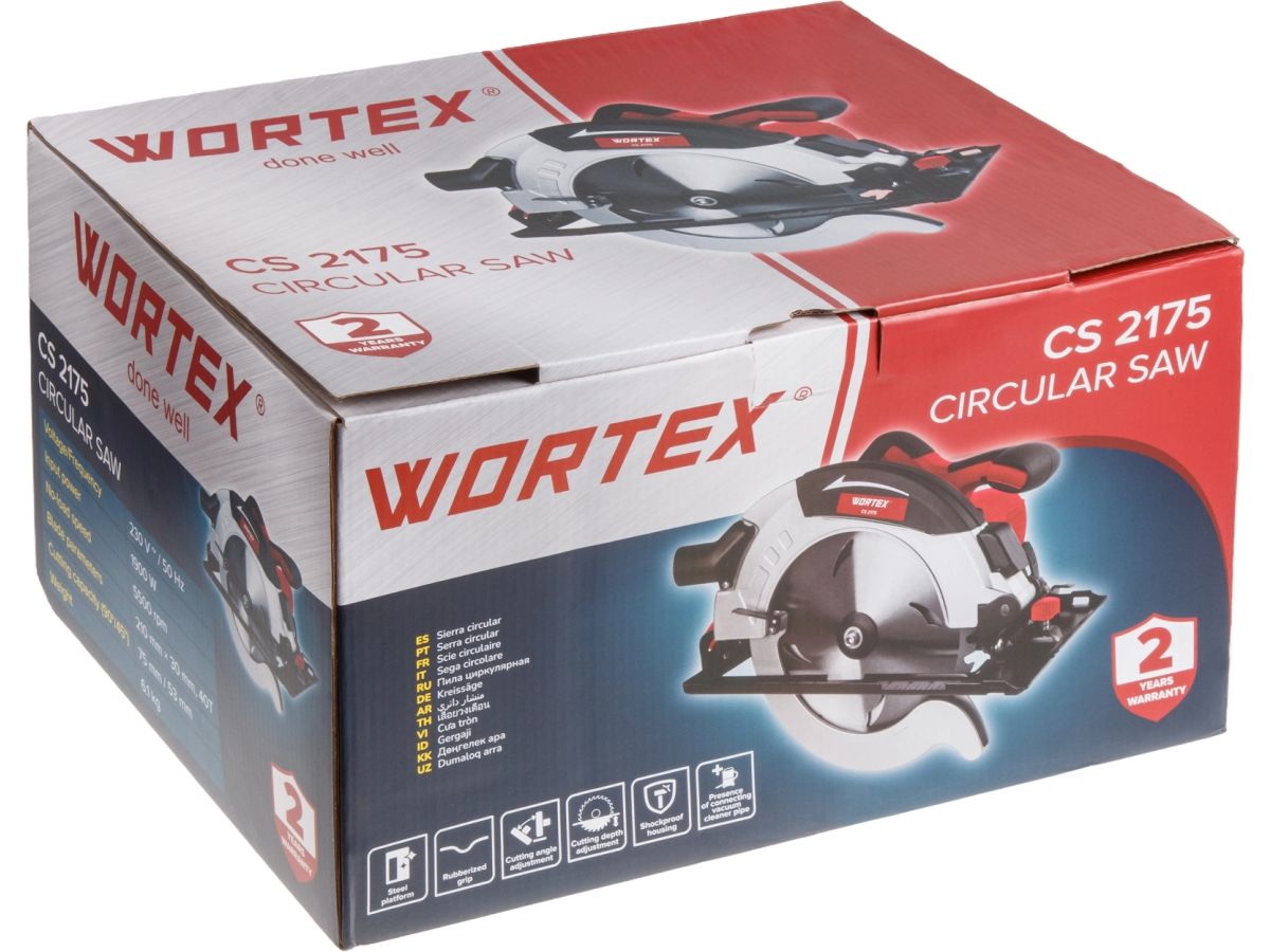 Циркулярная пила WORTEX CS 2175 в кор. 1900 Вт, 210 мм, до 75 мм (макс. глуб. пропила в дереве (90°/45°) 75/53 мм) 1318506