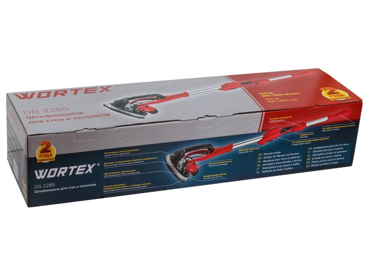 Шлифмашина для стен и потолков WORTEX DG 2285 в кор. 820 Вт, 225 мм, LED, 600-1900 об/мин (Регул. об., НЕ требуется подключение к пылесосу) 0304215