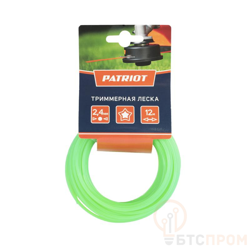 Леска D2.4мм L12м 240-12-3 картонный подвес звезда зел. PATRIOT 805205122 фото в каталоге от BTSprom.by