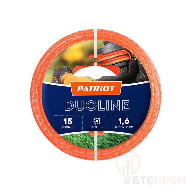 Леска Duoline D1.6мм L15м (скрученный квадрат; двухцветная; жила) на пластиковой обойме блистерн. тип красн. PATRIOT 805401141