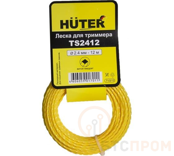 Леска для триммера HUTER обладает высокой прочностью и гибкостью. Режущий элемент триммера, правильный выбор ее толщины и формы влияет на скорость кошения и износ лески. Леска Huter TS2412 с сечением в форме витого квадрата, диаметр 2,4 мм, длина 12 м. Подходит для триммеров: GET-LS45, GET-1200SL, GET-1500B, GET-1700B, GET-1500SL, ЭТ- 1000, ЭТ-1200Н, ЭТ-1500Н, ЭТ-1500НВ, ЭТ-1700НВ.