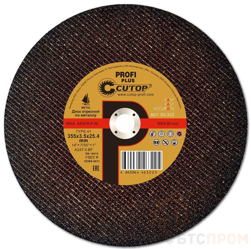 Диск отрезной по металлу профессиональный Т41-355х3.5х25.4мм Profi Plus Cutop 50-322 фото в каталоге от BTSprom.by