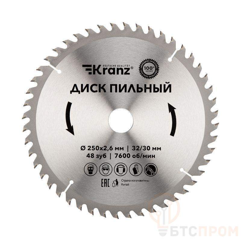Диск пильный 250мм х48зуб х32/30мм Kranz KR-92-0128 фото в каталоге от BTSprom.by