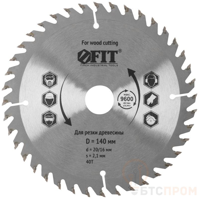 Диск пильный для циркулярных пил по дереву 140х20/16х40T FIT 37715 фото в каталоге от BTSprom.by