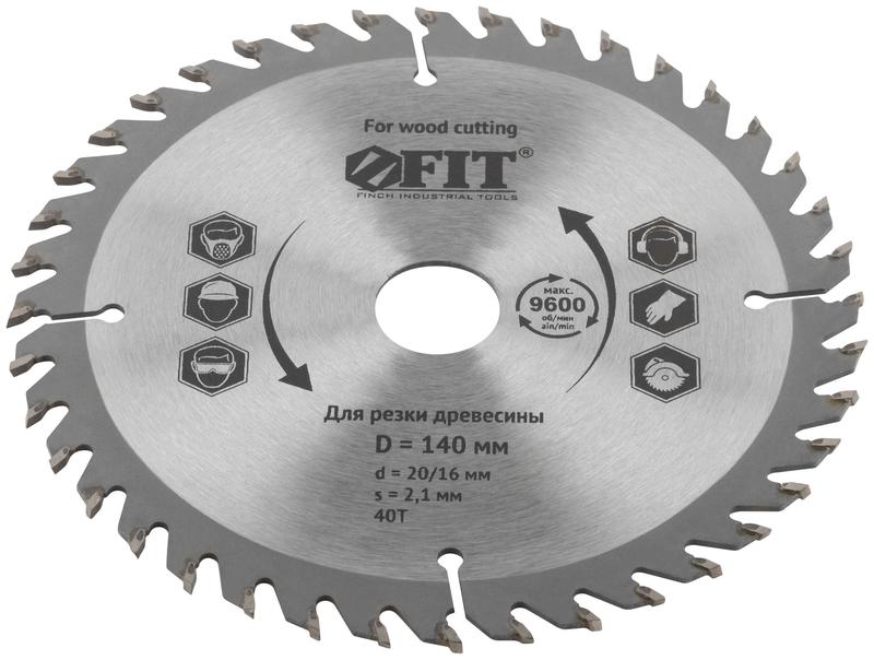 –Диск пильный для циркулярных пил по дереву 140х20/16х40T FIT 37715
