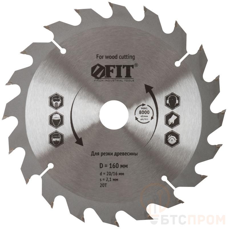 Диск пильный для циркулярных пил по дереву 160х20/16х20T FIT 37727 фото в каталоге от BTSprom.by