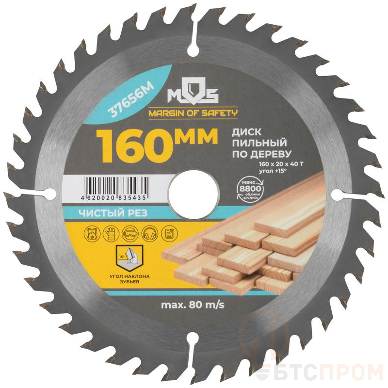 Диск пильный для циркулярных пил по дереву 160х20х40T + кольцо 20/16мм MOS 37656М фото в каталоге от BTSprom.by