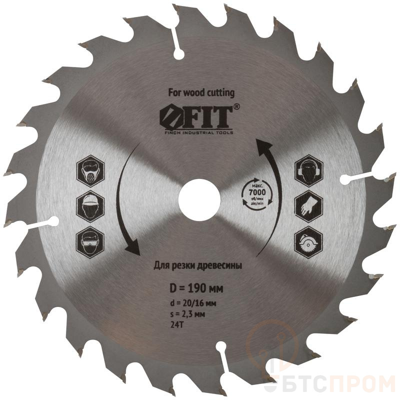 Диск пильный для циркулярных пил по дереву 190х20/16х24T FIT 37743 фото в каталоге от BTSprom.by
