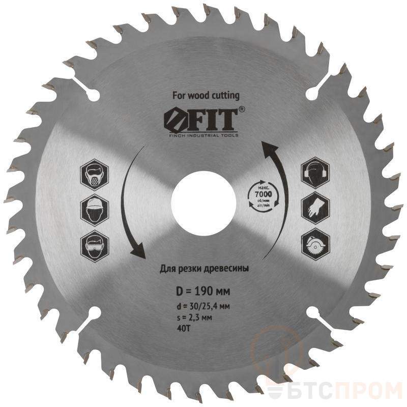 –Диск пильный для циркулярных пил по дереву 190х30/25.4х40T FIT 37742