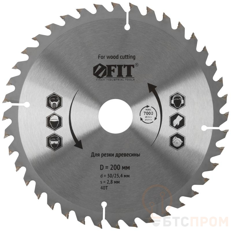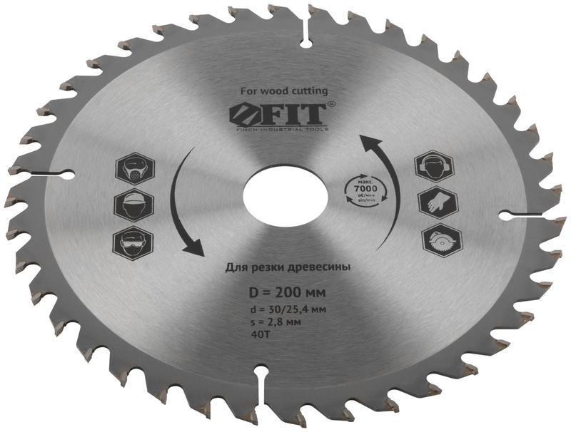 –Диск пильный для циркулярных пил по дереву 200х30/25.4х40T FIT 37746