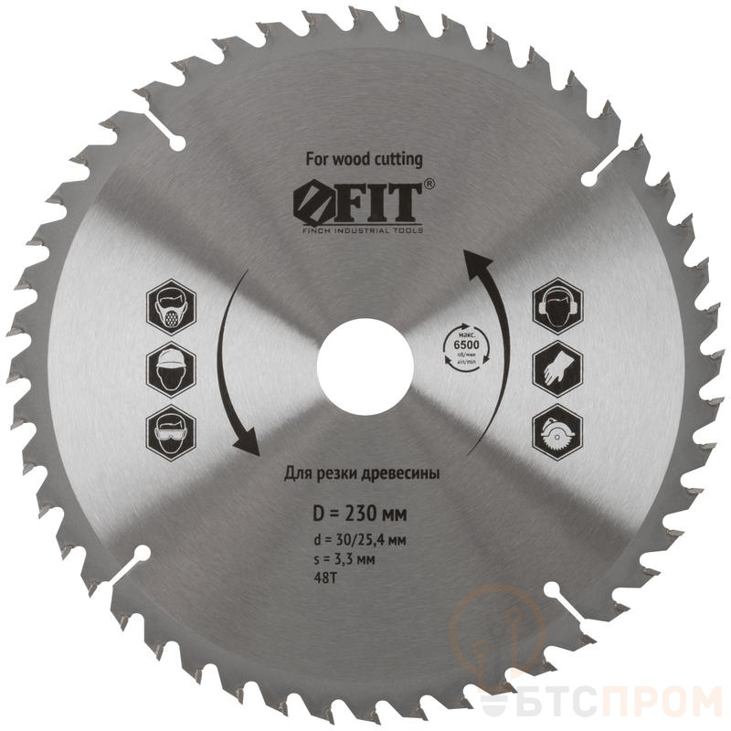 Диск пильный для циркулярных пил FIT IT предназначен для работ по дереву твердых и мягких пород (в том числе с гвоздями), фанеры, ДСП. Диски проходят процесс закалки с целью улучшения геометрии, уменьшения нагрева при длительных работах, а также повышения износостойкости. Компенсационные пазы обеспечивают эффективное охлаждение и отвод стружки. Зубья изготовлены из мелкозернистого композитного карбид-вольфрамового сплава ВК8, обладающего высокой сопротивляемостью к ударным нагрузкам.