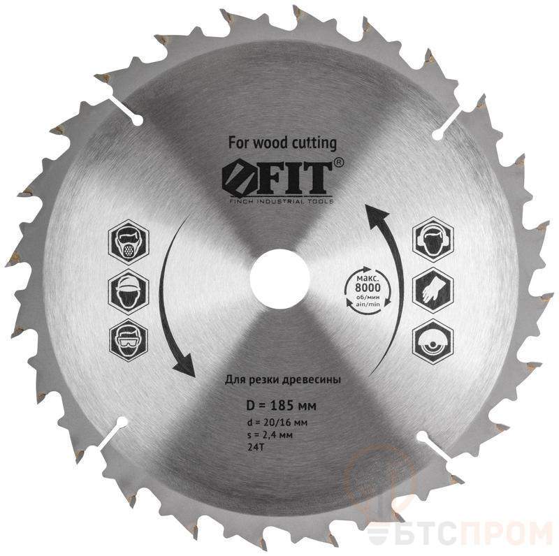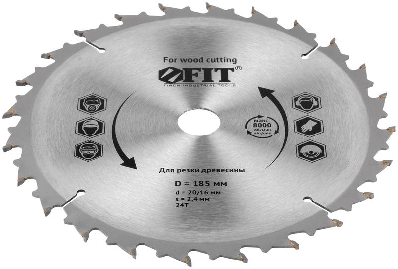 Диск пильный для циркулярных пил по дереву 185х20/16х24Т спец. форма зуба FIT 37686