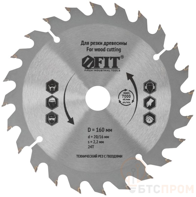 Диск пильный для циркулярных пил по дереву 160х20/16х24T технический рез с гвоздями FIT 37702 фото в каталоге от BTSprom.by