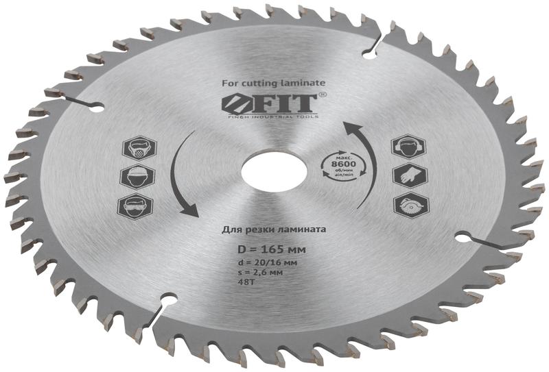 Диск пильный для циркулярных пил по ламинату 165х20/16х48T FIT 37772