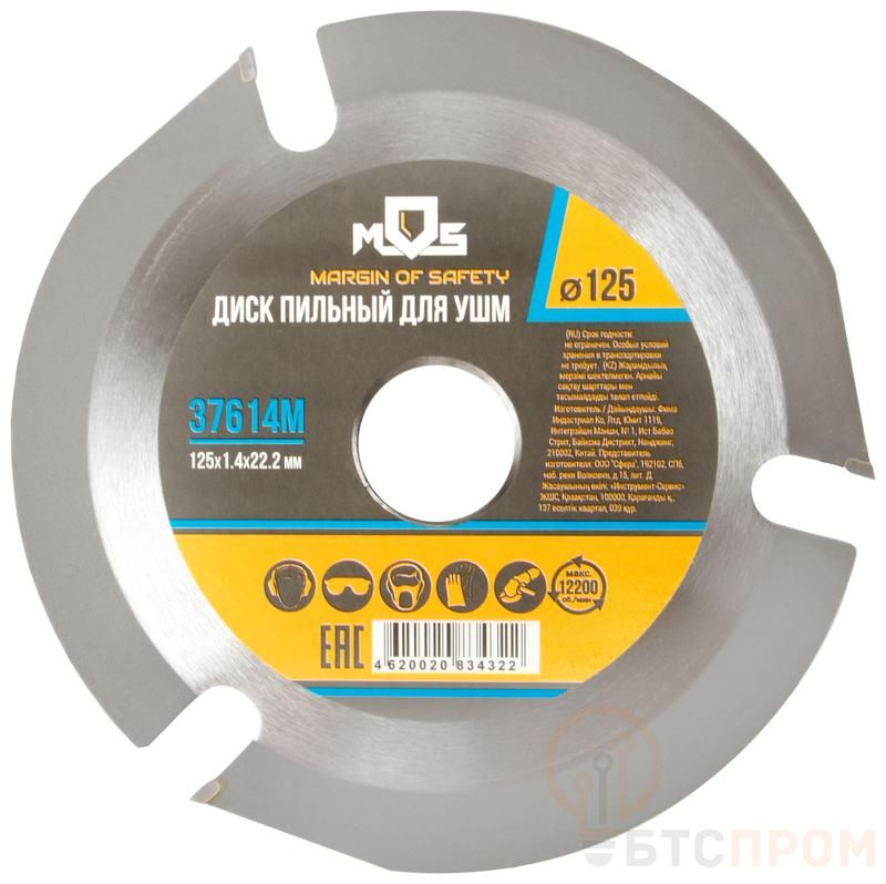 Диск пильный по дереву посадочный диаметр 22.2мм 3зуб. с карбидными вставками мелкийзуб 125мм MOS 37614М