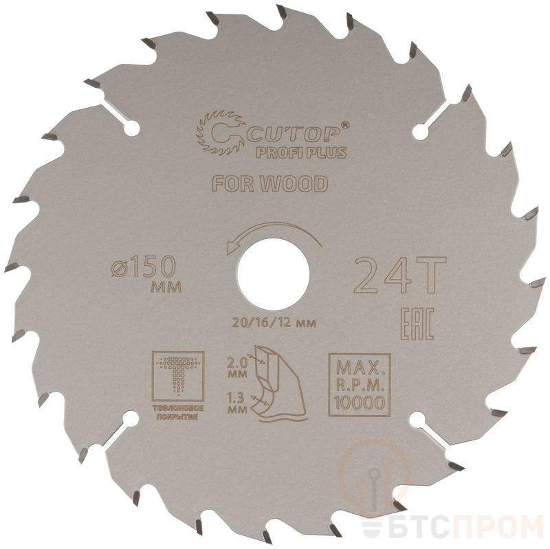 Диск пильный по дереву с тефлоновым покрытием 24Т Profi plus 150х1.3/2.0х20/16/12мм Cutop 75-15024Т