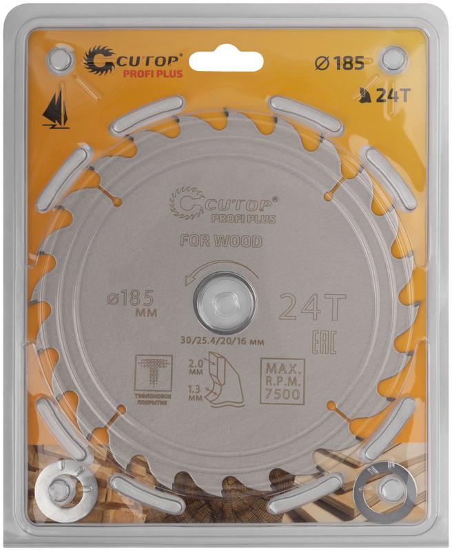 Диск пильный по дереву с тефлоновым покрытием 24Т Profi plus 185х1.3/2.0х30/25.4/20/16мм Cutop 75-18524Т