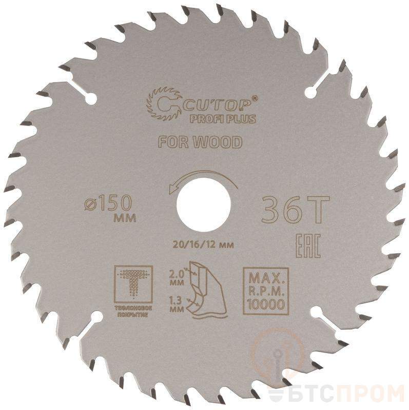 Диск пильный по дереву с тефлоновым покрытием 36Т Profi plus 150х1.3/2.0х20/16/12мм Cutop 75-15036Т