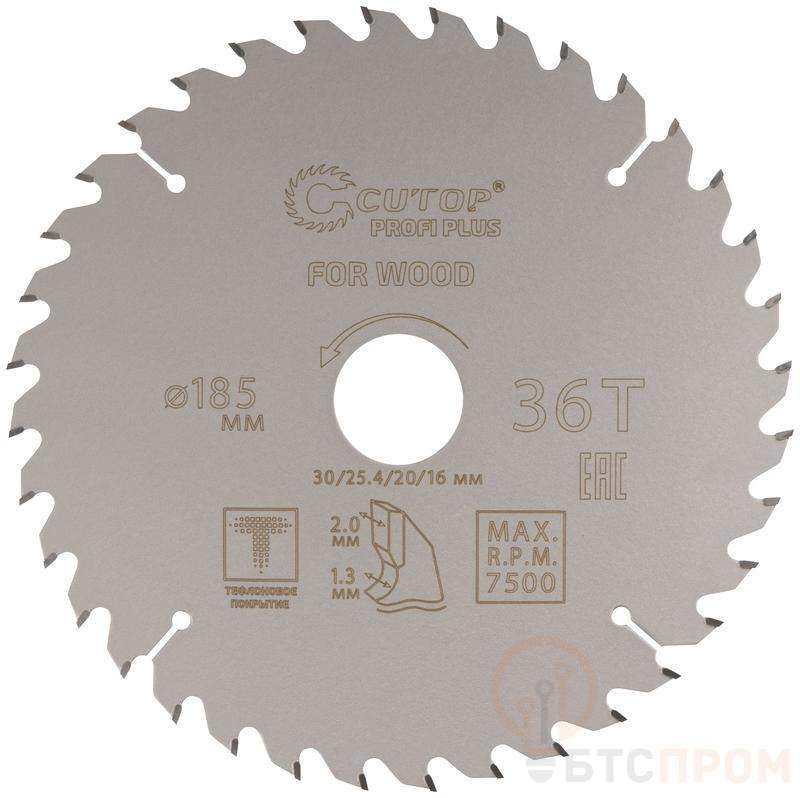 Диск пильный по дереву с тефлоновым покрытием 36Т Profi plus 185х1.3/2.0х30/25.4/20/16мм Cutop 75-18536Т