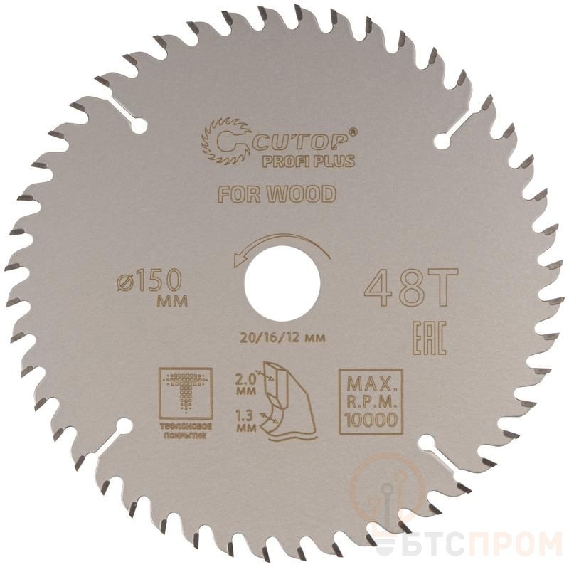 Диск пильный по дереву Cutop Profi Plus с тефлоновым покрытием. Используется совместно с циркулярными и торцовочными пилами для продольного и поперечного реза. Предназначен для распила мягких и твердых пород древесины, МДФ, фанеры и др. В комплекте поставляются переходные кольца с посадочными диаметрами (диаметры указаны на диске).Диск имеет тефлоновое покрытие и компенсационные пазы, которы способствуют быстрому теплоотводу. Благодаря этому рез получается ровный, а диск не деформируется и имеет более длительный срок службы. Изготавливаются диски в специальной автоматической индукционной машине, которая обеспечивает более гладкую поверхность и острые зубья. Материал - инструментальная сталь, карбидные зубья. Упаковка - блистер.