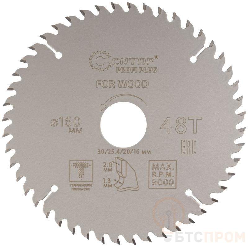 Диск пильный по дереву с тефлоновым покрытием 48Т Profi plus 160х1.3/2.0х30/25.4/20/16мм Cutop 75-16048Т