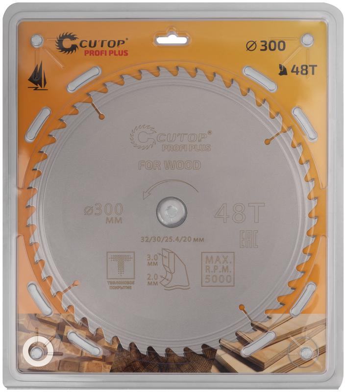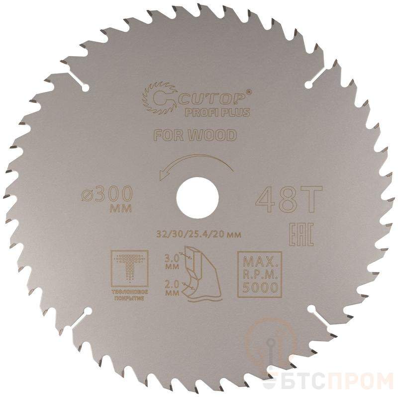 Диск пильный по дереву с тефлоновым покрытием 48Т Profi plus 300х2.0/3.0х32/30/25.4/20мм Cutop 75-30048Т