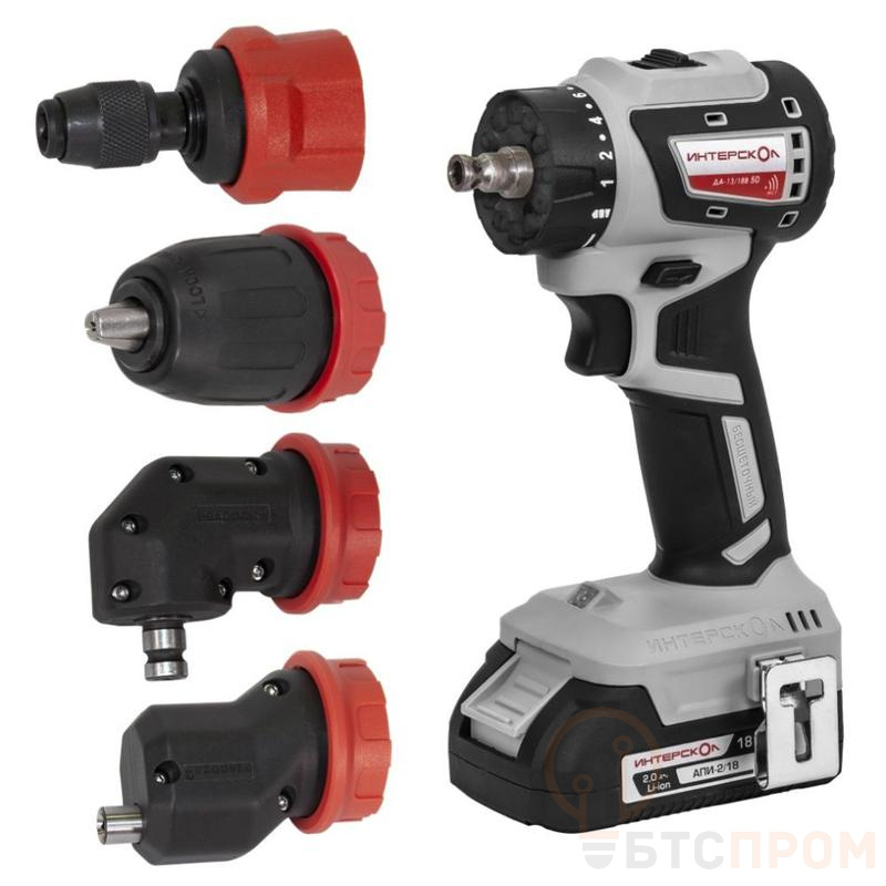 Дрель-шуруповерт аккумуляторная бесщеточн. ДА-13/18В 50 комби АПИ (Li-ion кейс 2 аккум. 2А.ч 4 насадки) ИНТЕРСКОЛ 776.2.2.79