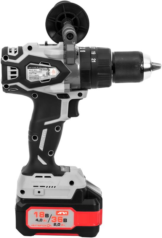 Дрель-шуруповерт аккумуляторная бесщеточн. ударн. ДАУ-13/36В 140 Li-ion АПИ (кейс 2 аккум. 2.0А.ч ЗУ) ИНТЕРСКОЛ 852.2.2.70