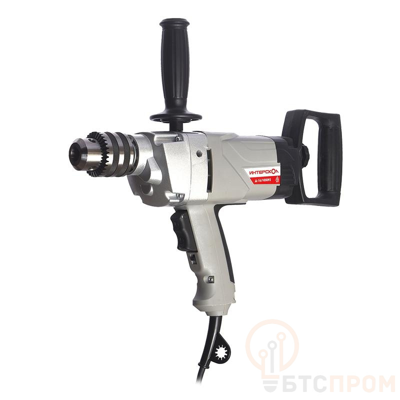 Профессиональная дрель рекомендуется для тяжелых и длительных работ, таких как сверление отверстий большого диаметра и глубины, например, при сборке брусового дома для установки нагелей с помощью перовых сверл с удлинителем или винтовых сверл с ходовым буравчиком Левиса, в качестве миксера при перемешивании различных смесей, начиная от краски и заканчивая бетоном с различным наполнителем, для работы крацовками и шлифкругами при выполнении шлифовки и зачистки. мощный и надежный двигатель, обеспечивающий высокую производительность инструмента в продолжительном режиме работы 16мм ключевой патрон уверенно работает с крупной оснасткой и выдерживает значительные нагрузки длительное время специальный выключатель, легко и удобно позволяет включать как прямое, так и реверсивное вращение движок фиксации выключателя во включенном состоянии две дополнительные рукоятки – прямая и D-образная, которые могут быть установлены в 4 позиции для максимального удобства металлический корпус редуктора из легкого сплава увеличивает наработку на отказ и позволяет эксплуатировать дрель в значительно более тяжелых условиях. вставка для хранения ключа на шнуре Гарантия: 24 месяца