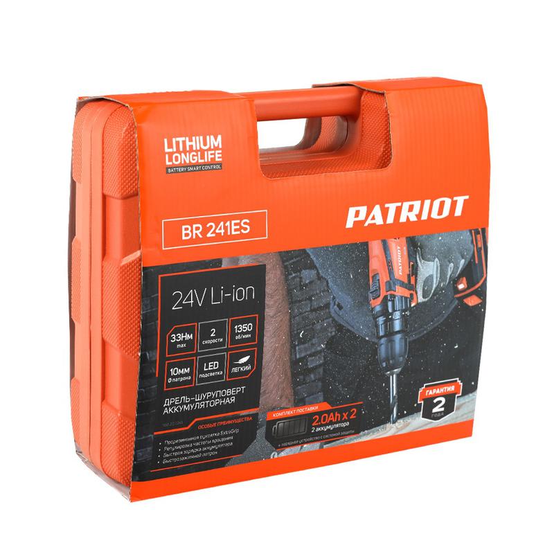 Дрель-шуруповерт аккумуляторная BR 241ES две АКБ Li-Ion 24В 2.0Ач 33Нм 2 скорости кейс PATRIOT 180201241