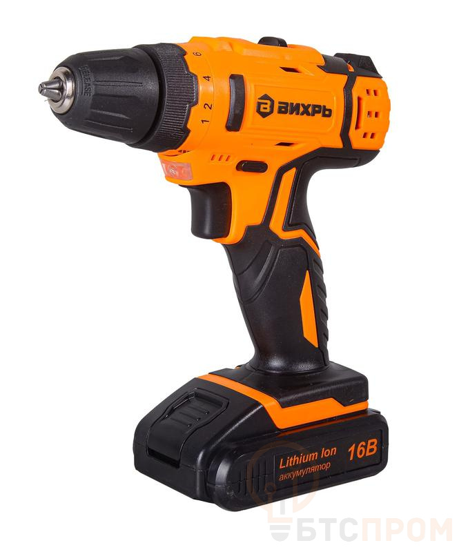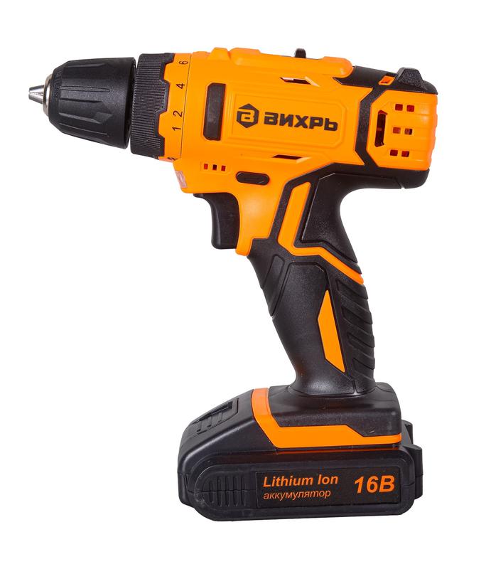 –Дрель-шуруповерт аккумуляторная ДА-16Л-2КА с набором оснастки 65 предметов Вихрь 72/14/49